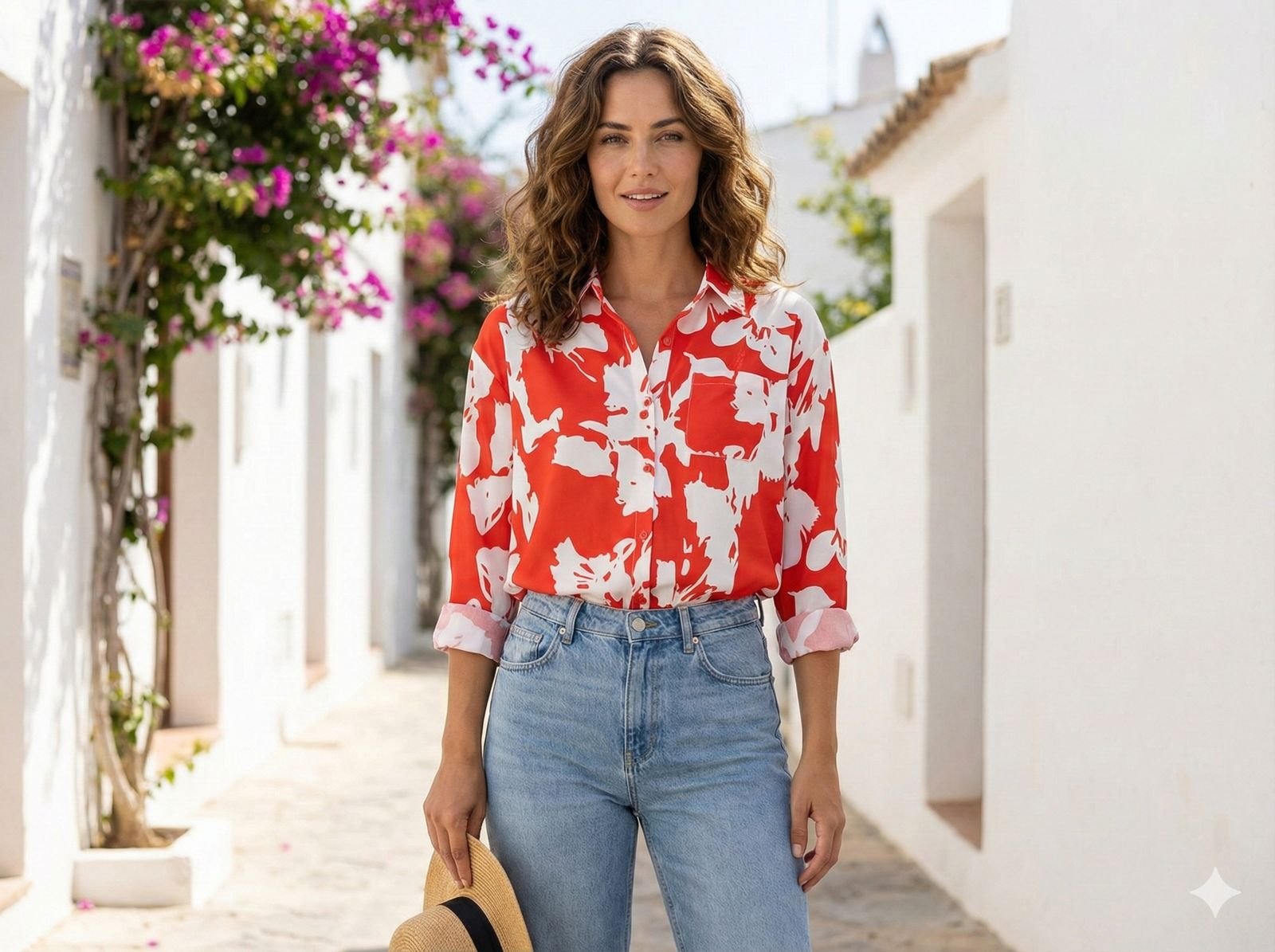 1. Blusa manga larga color rojo con blanco Talla S al L