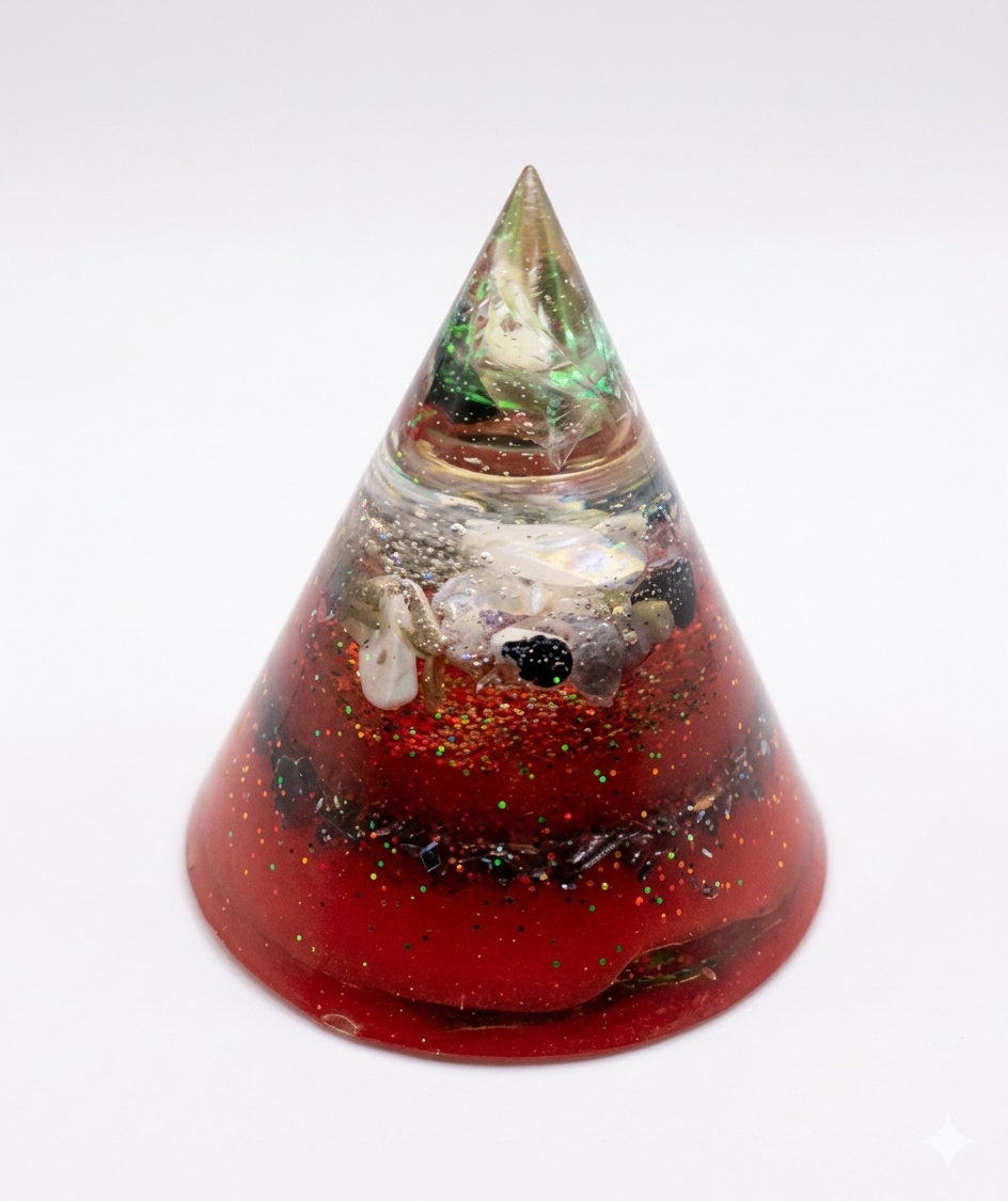 Cono Raíz de Protección y Poder, de color rojo vibra con la energía del chackra raíz, brindando estabilidad, fuerza y protección profunda. Su vibración roja despierta tu fuerza interior.