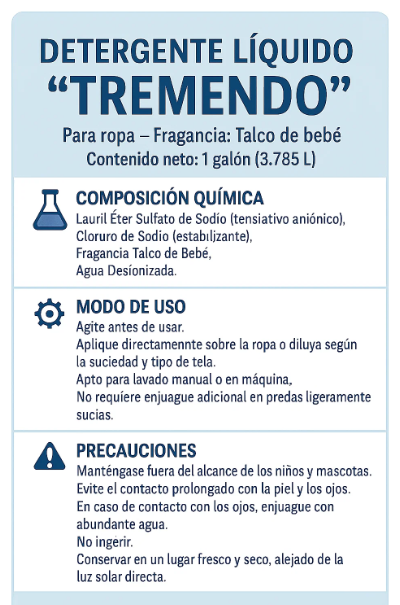 El Detergente Líquido Tremendo está formulado para ofrecer una limpieza efectiva en el lavado diario de la ropa, especialmente en lavadoras automáticas, proporcionando abundante espuma, un aroma agradable y un excelente rendimiento en cada lavado.