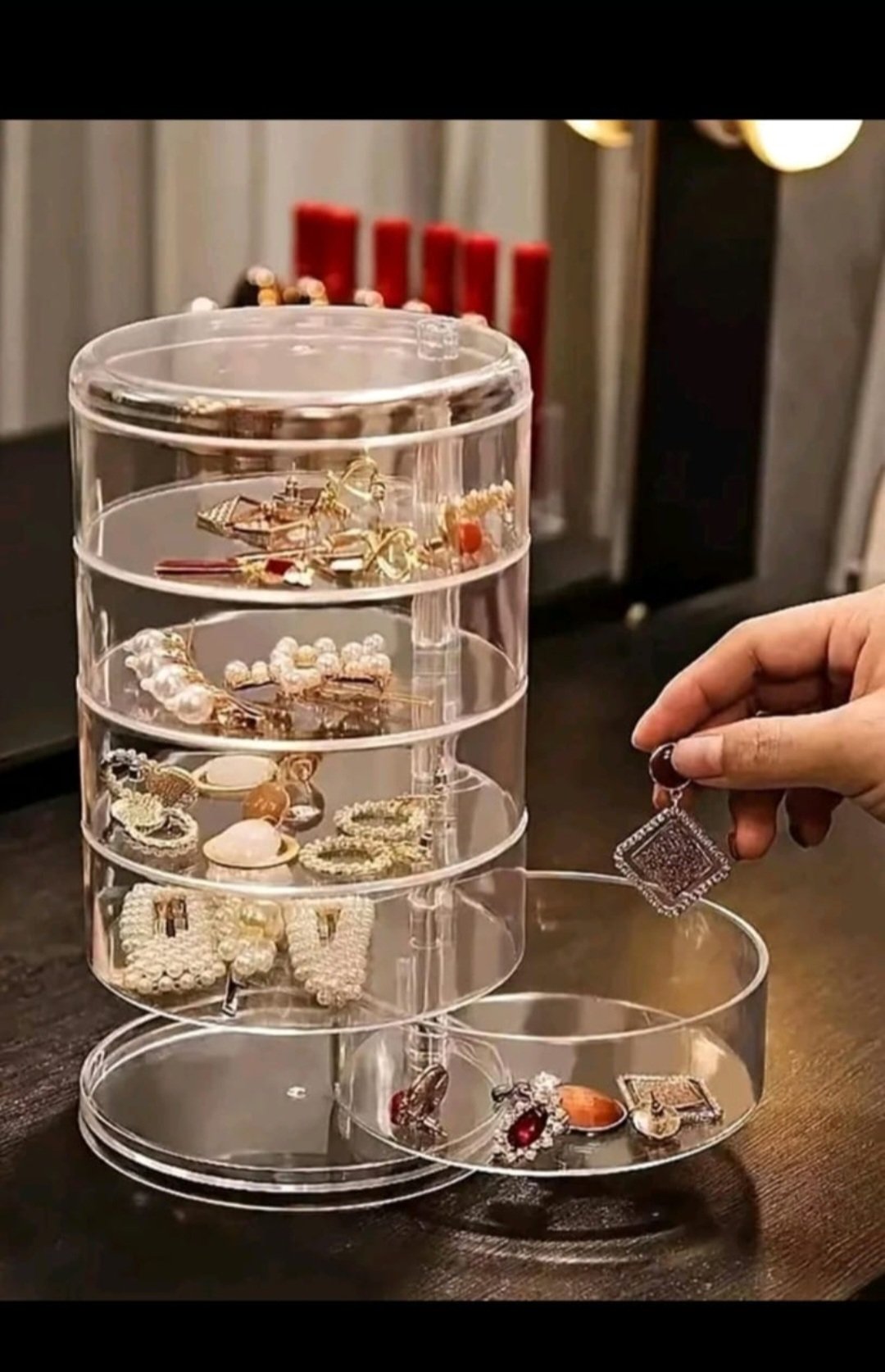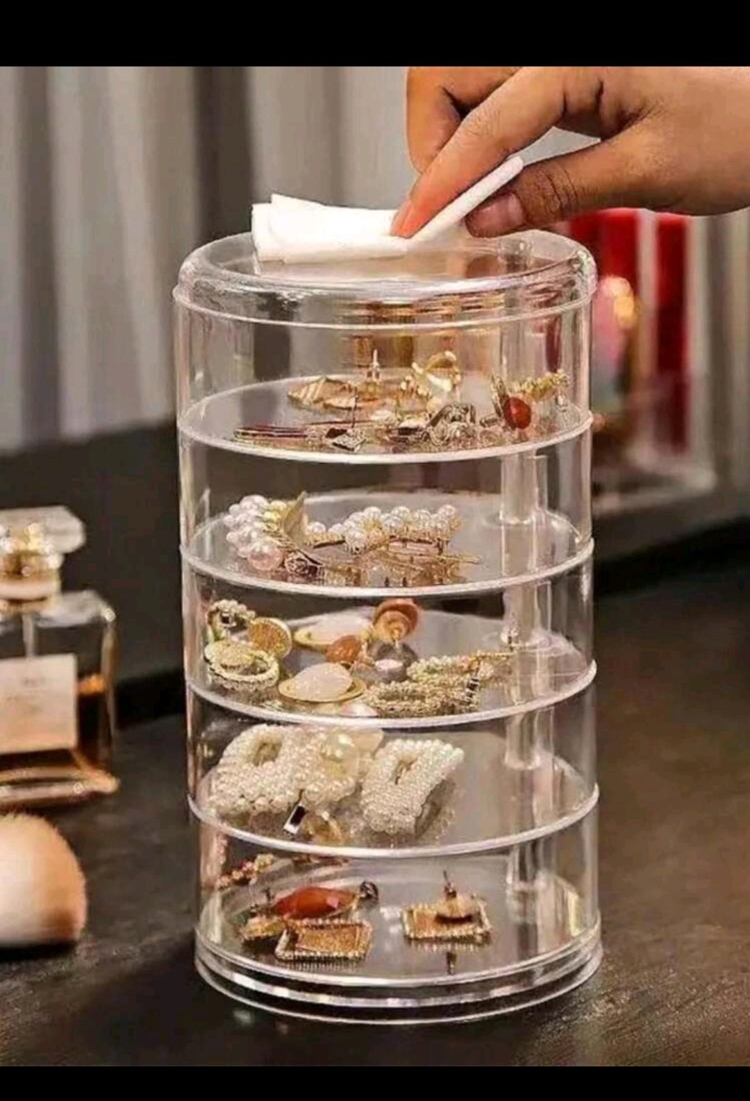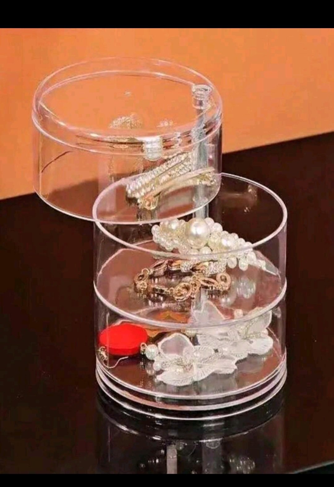 🧡 Pieza elegante de joyero giratorio de múltiples capas para organización sin esfuerzo de aretes.